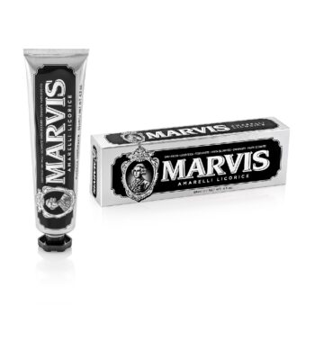 Целюлозна смола, що входить до складу, робить пасту Marvis схожою на густі вершки і запобігає її висиханню і розшаруванню, фтор і ксиліт захищають зуби від карієсу, і зміцнюють їх, а делікатні абразивні речовини – гідроксид алюмінію і діоксид кремнію – м’яко очищають і полірують емаль, не пошкоджуючи і не дряпаючи її.